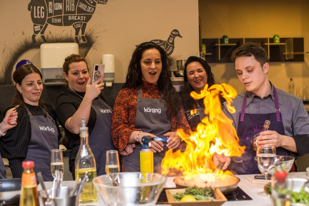 Соревнование команд для большой компании при участии двух шефов, возможность выбора разного меню